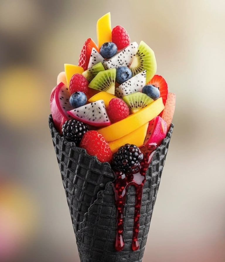 Des Cornets de fruits frais , généreusement colorés et débordants de saveurs!