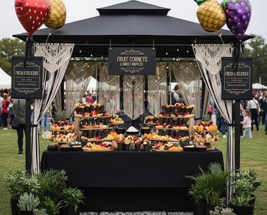 Apporter fraîcheur et bonne humeur à vos événements avec nos délicieux cornets de fruits frais, préparés et servis avec le sourire!